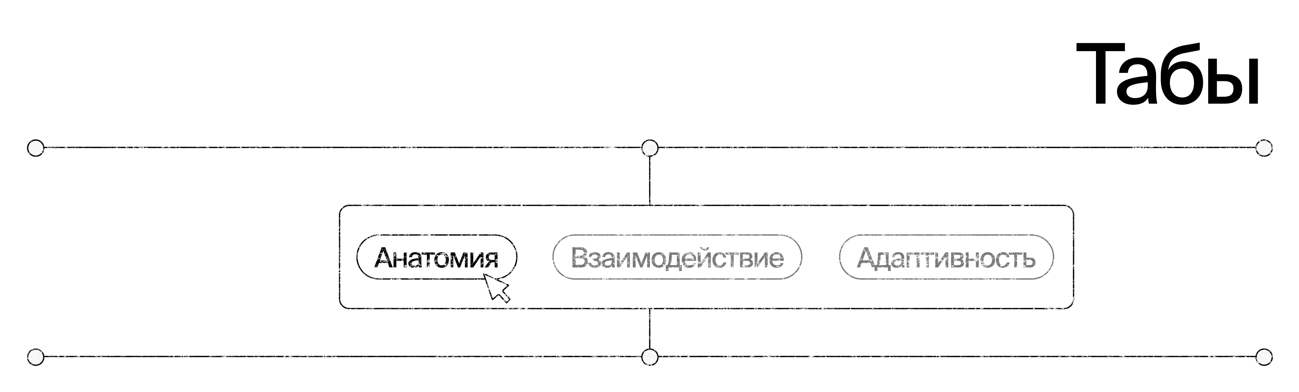 **Табы** — компонент интерфейса для переключения между связанными, но различными блоками контента в одной области просмотра. Они помогают организовать информацию в компактные, доступные секции, сохраняя контекст и уменьшая визуальный шум.