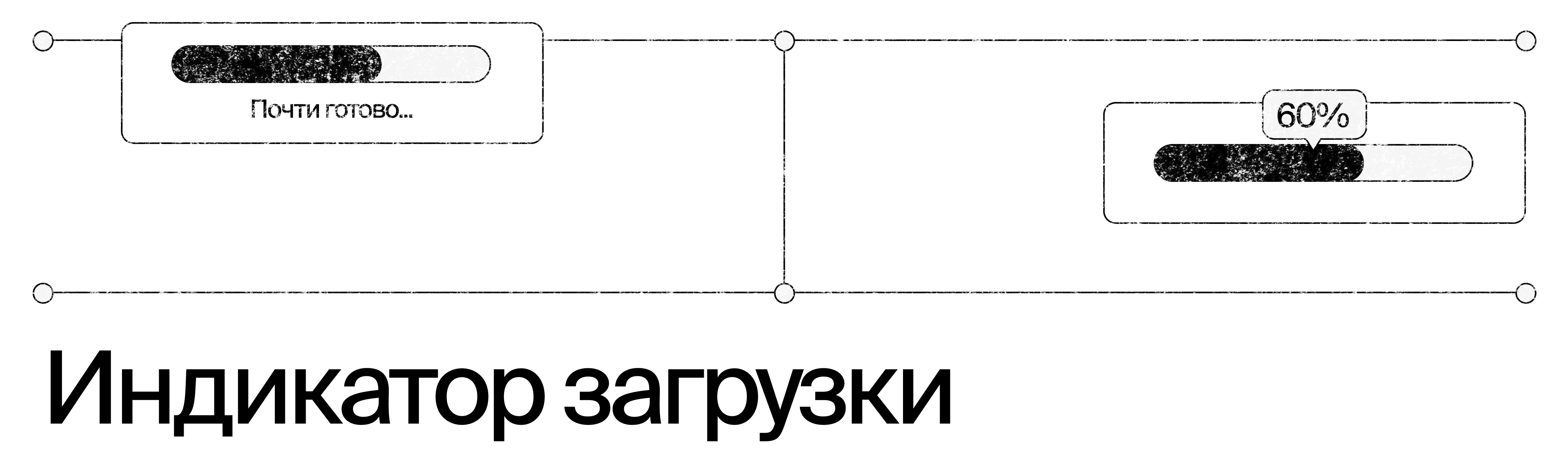 Индикатор загрузки — это динамический элемент интерфейса, который информирует пользователя о том, что система обрабатывает запрос или выполняет определенную операцию. Индикатор загрузки используется, когда точное время выполнения операции неизвестно. Данный элемент создан для того, чтобы удержать внимание пользователя в моменты ожидания и дать ему понять, что его запрос обрабатывается.